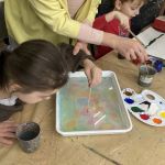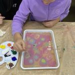 Вчера на занятии по ИЗО под руководством Уткиной Елены Валентиновны ребята из инклюзивной творческой лаборатории «Дорога к счастью» рисовали в технике Эбру.