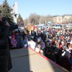 1 марта на площади Ленина перед ДК «Россия» состоялось празднование Широкой Масленицы. Собралось очень много гостей, все были с детьми. Погода была солнечная и теплая, поэтому участников в конкурсах было хоть отбавляй. На сцене выступали скоморохи – дети-участники театральных коллективов ДК «Россия». Артисты скоморохов в течение всего праздника проводили с гостями игры, конкурсы, викторины, русские забавы. В промежутках между конкурсами выступали вокальные и танцевальные коллективы ДК «Россия»: народный коллектив «Хор русской песни», народный коллектив ансамбль саратовских гармоник «Озорные колокольчики», солистки народного коллектива вокального ансамбля «Ретро»: Светлана Никитина, Алефтина Василенко и Елена Позднякова; литературно-музыкальный коллектив «На завалинке», ансамбль народного танца «Радуга», ансамбль современного эстрадного танца «Серпантин», коллектив модельно-танцевальная «Школа движений». Все веселились и активно участвовали во всех активностях, которые предлагали скоморохи.