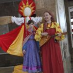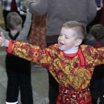 Фойе Дворца превратилось в шумную ярмарочную площадь: оно наполнилось заливистыми песнями, звонким смехом и переливами гармони. Гости всех возрастов с удовольствием водили хороводы, словно солнышко водит за собой весну, играли в старинные русские игры и состязались в ловкости.