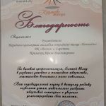 Руководитель Примачук И.В. и хореограф Боголюбская Ю.М. награждены благодарственными письмами за высокий профессионализм и вклад в развитие детского и юношеского творчества.