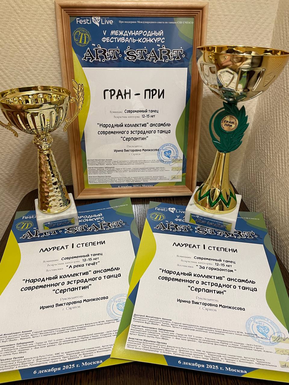 Итог— абсолютная победа! Ансамблю «Серпантин» присуждена ВЫСШАЯ НАГРАДА — ГРАН-ПРИ КОНКУРСА! Это триумф таланта, трудолюбия и слаженности всей команды!