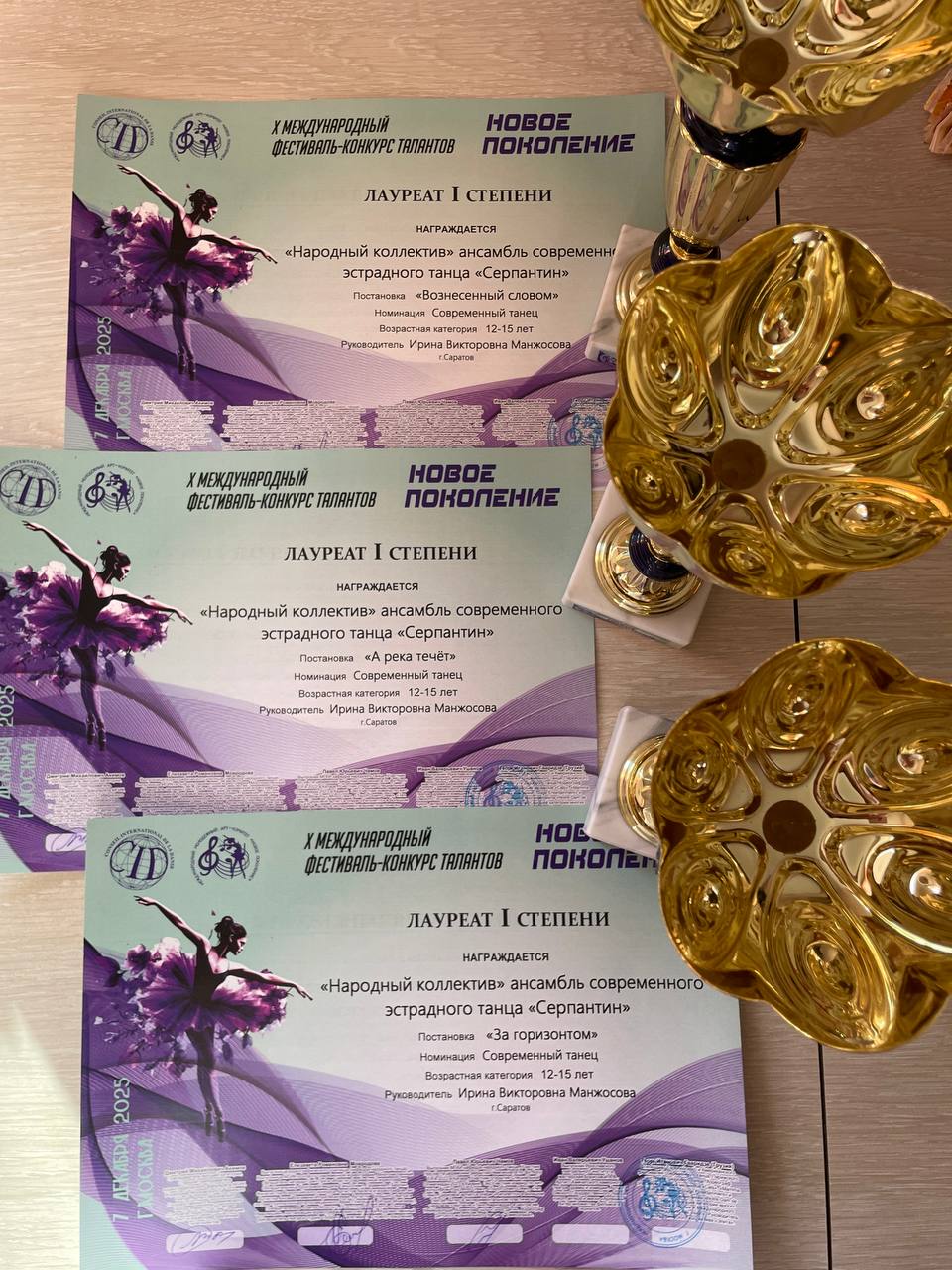 И здесь— феерия успеха! Наши танцоры завоевали ТРИ ДИПЛОМА ЛАУРЕАТА I СТЕПЕНИ! Три блестящие работы, три безоговорочные победы!