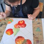 А на другом занятии творческой лаборатории, в нашей ИЗО-студии, под руководством Елены Уткиной, царила своя, фруктовая атмосфера! Юные таланты из «Дороги к счастью» взялись за кисти и краски, чтобы запечатлеть на холстах один из символов Саратовской земли — сочные хвалынские яблочки. Работы получились невероятно яркими, сочными и по-настоящему летними! Кажется, от этих картин исходит неповторимый яблочный аромат.