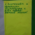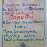 От вас мы получили большое количество работ – поздравительных открыток, которыми мы смогли именно 9 мая поздравить 94 ветерана Ленинского района г. Саратова. Ветераны получили авторские открытки с личными поздравлениями и были очень рады такому персональному подарку от Вас, наши дорогие участники!