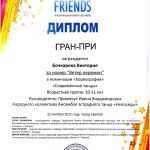 Поздравляем участницу «Народного коллектива» ансамбля эстрадного танца Бочкареву Викторию с получением Гран-при на Международном фестивале-конкурсе « STAR FRIENDS». Виктория получила Гран-при за номер «Ветер перемен» в номинации «Хореография», «Современные танцы» в возрастной группе 10-11 лет. Молодец! Браво!