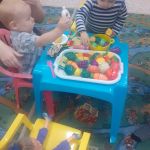 Сегодня в детской студии «Развиваемся, играя» детки играли с куклой Катей. Украсили для Кати варежки к холодам (работа с пластилином). Строили домики и замки, готовили овощи, играли в мяч.