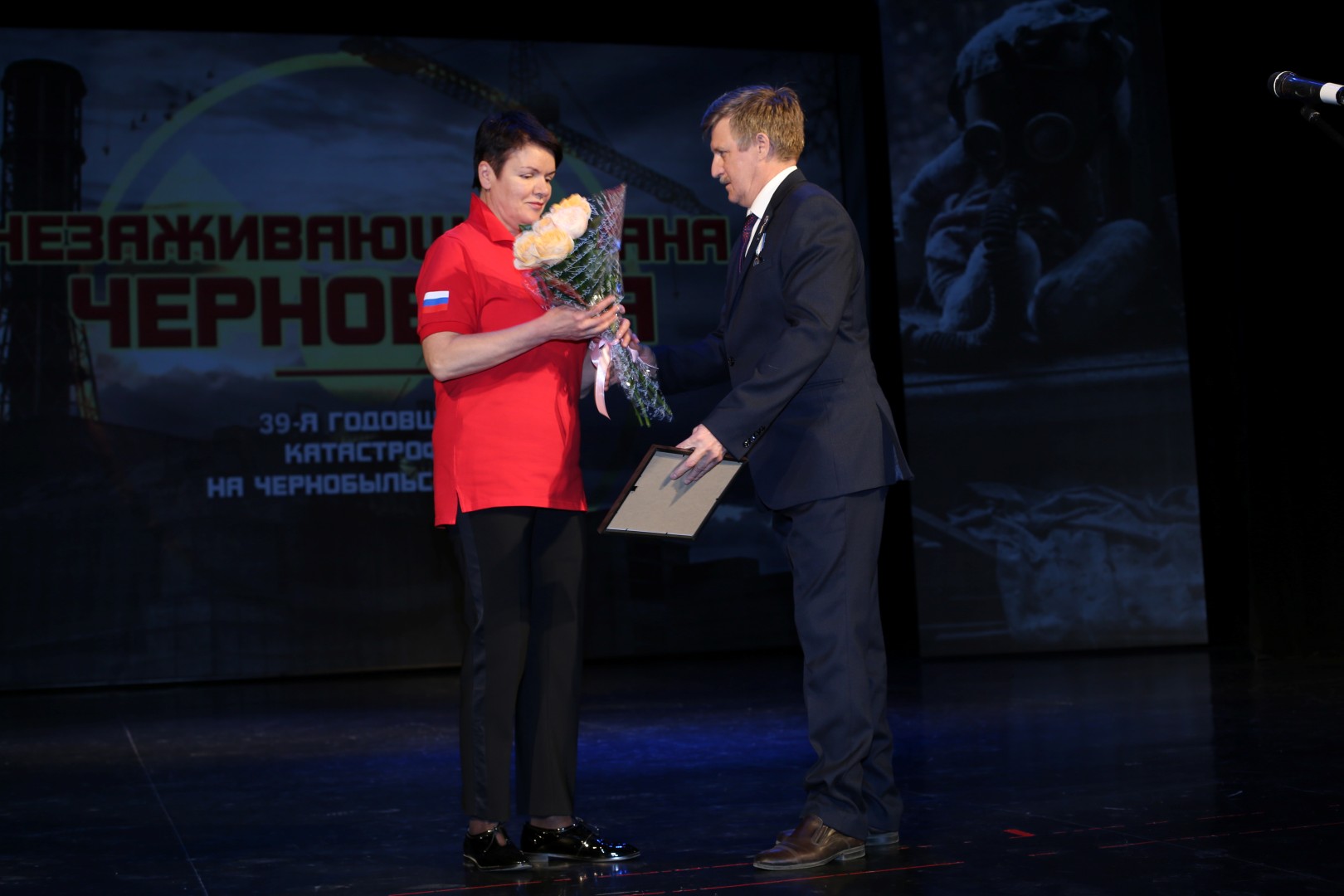 Особое внимание было уделено участникам ликвидации аварии, присутствующим в зале: звучали аплодисменты благодарности, а в честь тех, кто погиб, была объявлена минута молчания.