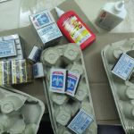 - Из ячеек от яиц вырезаем цветочки и покрываем акриловыми красками.