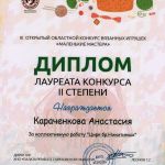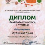 · Диплом Лауреата II степени получили – Арина Ступникова, Анастасия Караченкова и Алёна Разделкина за коллективную работу «Цирк им. братьев Никитиных».