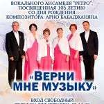 В 17:00 в театральном зале Дворца культуры «Россия» состоится концертная программа «Верни мне музыку» Народного коллектива вокального ансамбля «Ретро». И это будет не просто концерт, а душевный разговор на языке ностальгии.