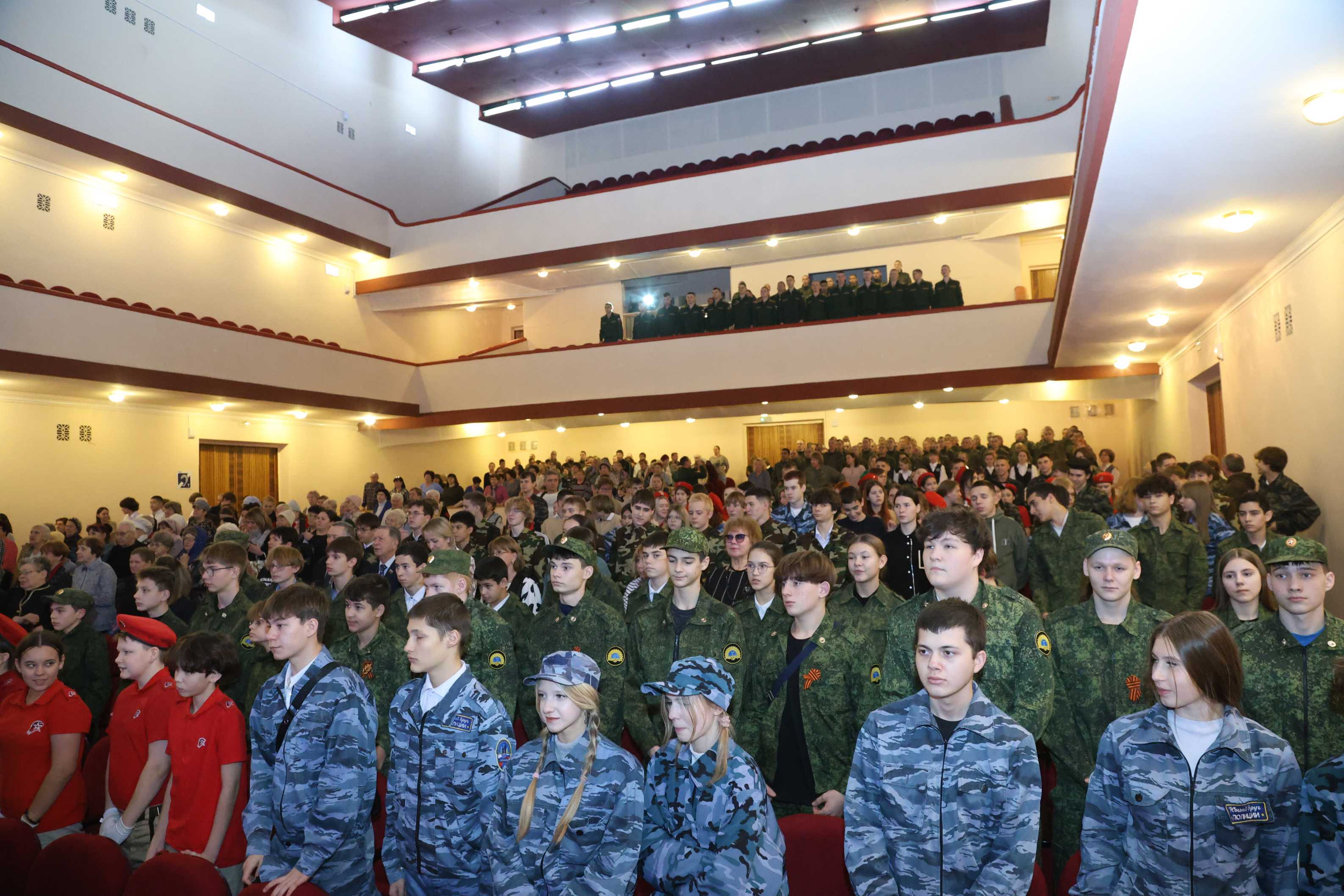 «Мы рады видеть в зале представителей разных поколений — ветеранов, курсантов, учащихся. Ваше присутствие — прямое доказательство нерушимой связи поколений. Для старших важно знать, что история будет жить в детях, внуках и правнуках. Сегодня мы завершаем патриотическую акцию «За нами будущее России», в которой участвовали 800 человек из 20 районов. Старт акции был дан в Год Защитника Отечества не случайно. Мы уверены, что в следующем году участников будет ещё больше, потому что за вами, ребята, — будущее России».