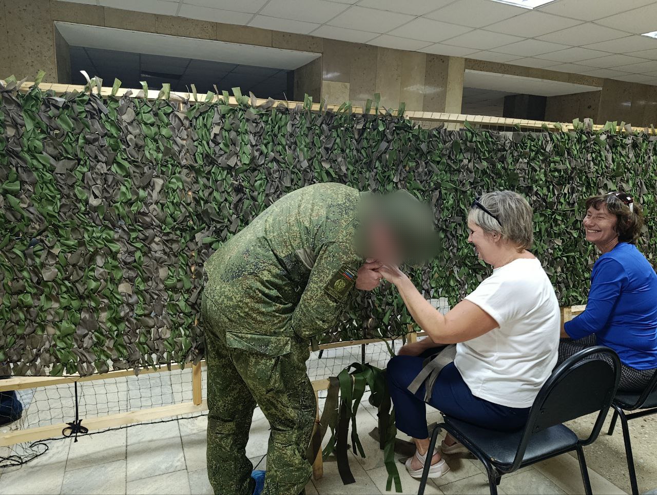 В завершении встречи почётный гость посетил волонтёров Дворца культуры «Россия», которые с самого начала специальной военной операции поддерживают бойцов: делают блиндажные свечи, шьют постельное бельё и много другое. Одно из основных направлений их работы, оказывающее огромное подспорье на передовой — плетение маскировочных сетей.
