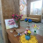 С одной стороны распустился невероятный сад: воспитанницы Народной студии клуба декоративно-прикладного творчества «Мастерица» под руководством Светланы Булатовой представили целую коллекцию весенних букетов. Тюльпаны, розы и невиданные цветы, застывшие в самых разных техниках рукоделия, словно впитали в себя солнечный свет и детское тепло. Кажется, ещё мгновение — и они наполнят воздух тонким ароматом.