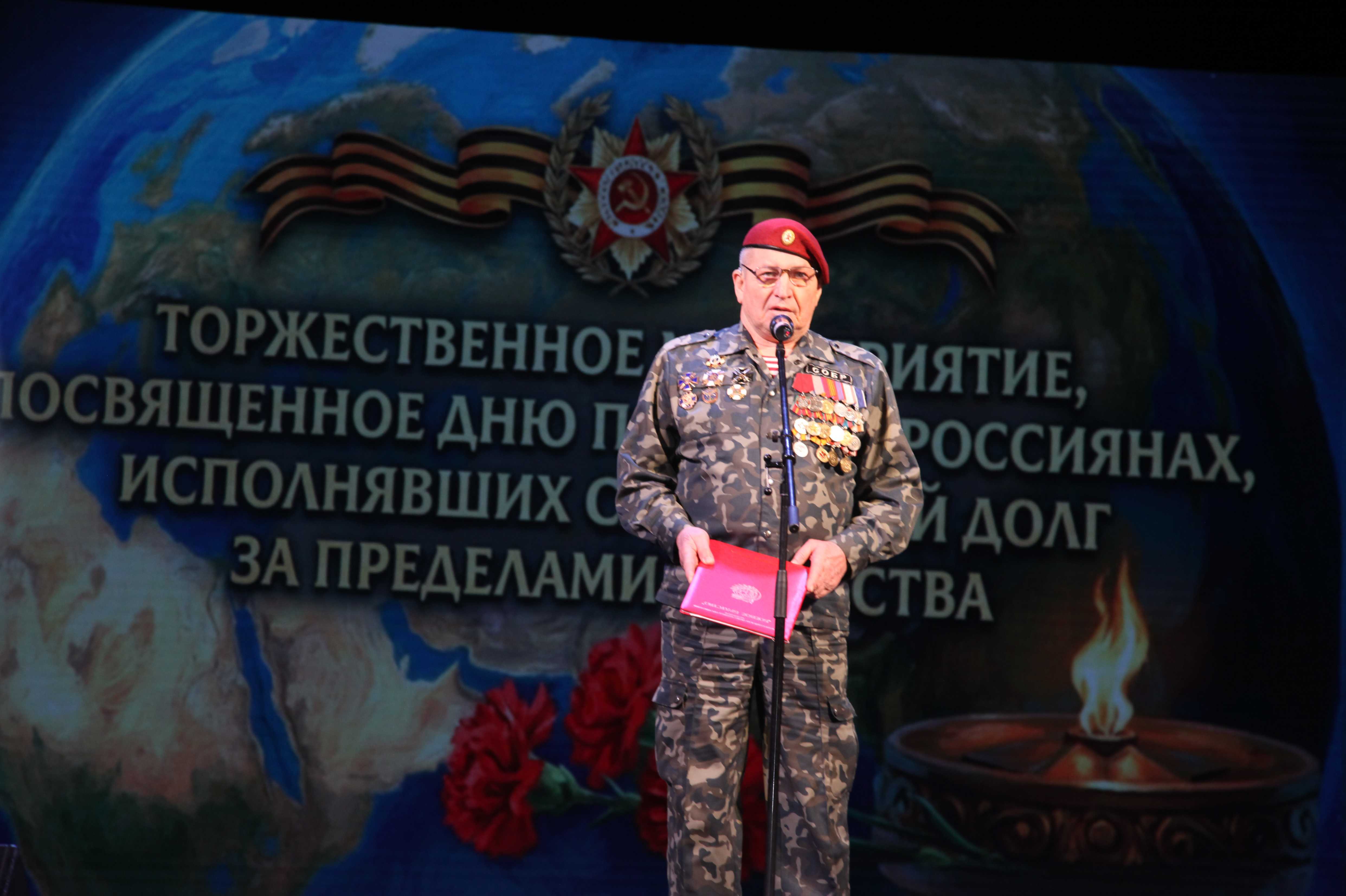 «15 февраля — день особенный для всех нас и для Дворца культуры «Россия». Много лет мы собираемся в этом зале сразу после митинга, чтобы вспомнить тех, кто до последнего дыхания выполнял приказ, и поклониться тем, кто выжил и сегодня в строю. Они работают с молодёжью, ведут общественные организации. И конечно, наша гордость — те, кто сейчас выполняет долг в зоне специальной военной операции. Они не предали память дедов, продолжили традицию защищать Родину. Сегодня, как и в годы Великой Отечественной, фронт и тыл едины. Матери и жёны плетут сети, дети рисуют рисунки и пишут письма — и всё это уходит «за ленточку». Президент объявил этот год Годом единства народов России. Только вместе, объединившись в один кулак, мы победим!»