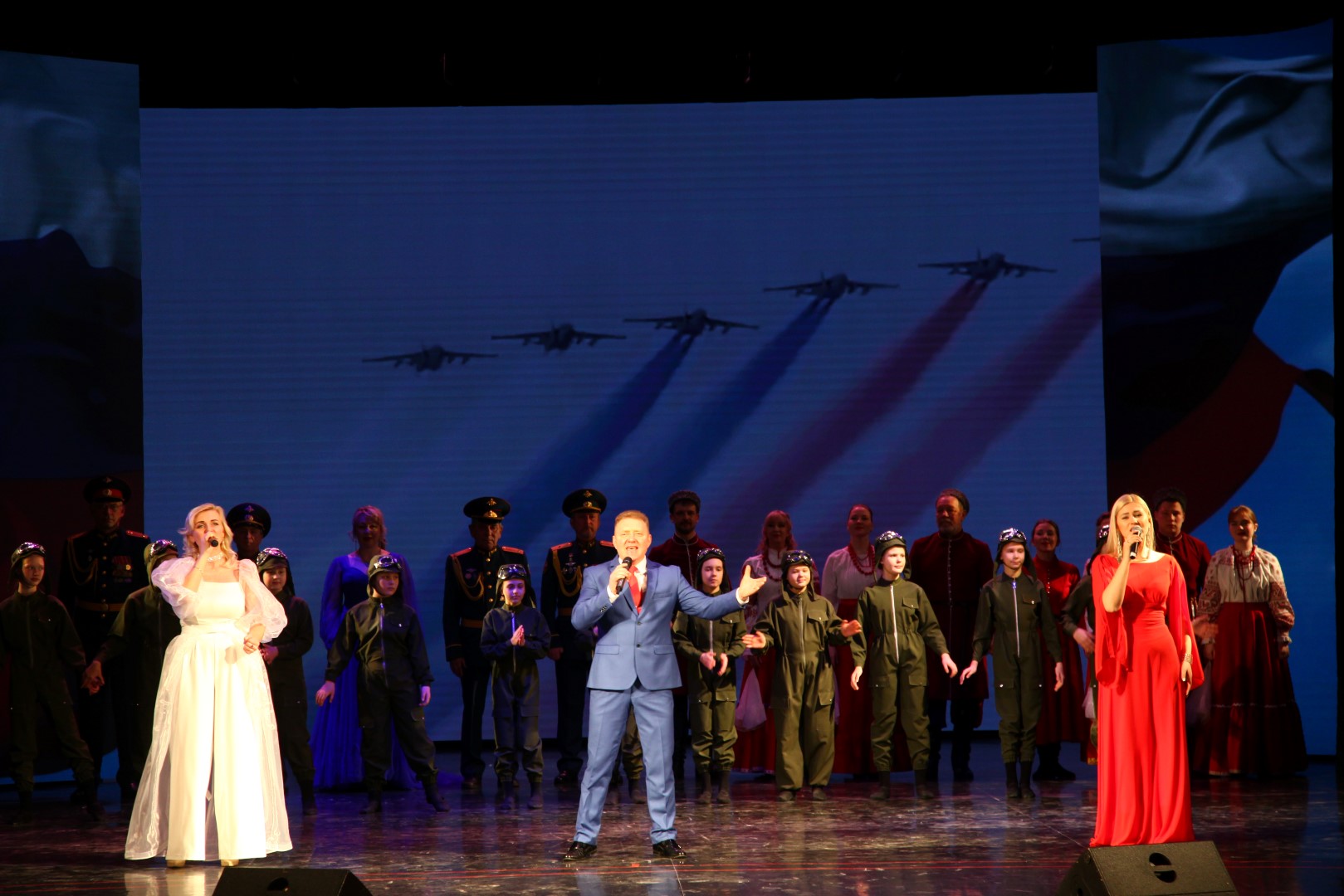 Атмосфера торжества дополнилась замечательным концертом, в котором приняли участие лауреаты Всероссийских и Международных конкурсов — В. Блинова, Е. Алешкина, П. Иванов, Е. Русланова, а также народные коллективы Дворца культуры «Россия»: театр танца “Арабеск”, ансамбль эстрадного танца “Серпантин”, ВИА “Офицеры запаса” и “Народный коллектив” Театр казачьей и популярной песни «РОССЫ» МУК ДК «Химиков», подарив зрителям незабываемые моменты вдохновения и радости.
