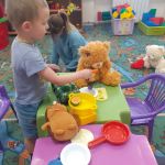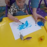 Сегодня в детской студии «Развиваемся, играя» с детками готовились в игровой форме к Новому году. Ходили в гости к лесным обитателям, приготовили для них угощение и танцевали вместе на полянке. А потом случилось волшебство и под ёлкой появились подарки. Ребята собрались все в кружок, распаковывали и рассматривали сувениры. В заключении рисовали красками и волшебным образом на листе появлялись снежинки. Вот такие волшебные занятия у нас проходят с малышами.