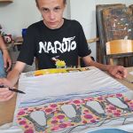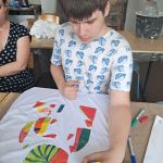 Вдохновленные летними мотивами, они с энтузиазмом переносили свои рисунки на ткань, используя текстильные фломастеры.