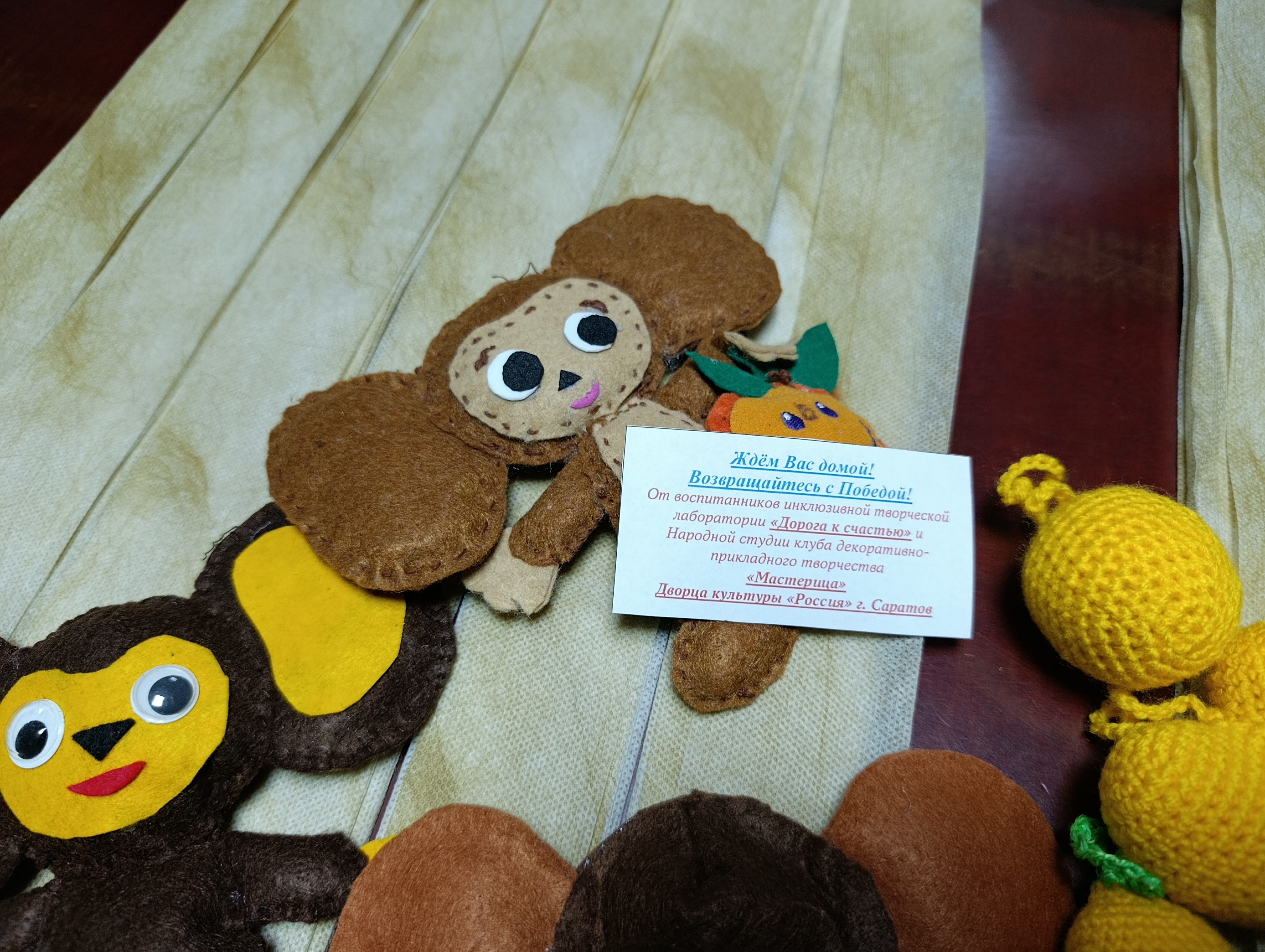 Эти символы добра и детства были созданы руками юных мастеров из инклюзивной творческой лаборатории «Дорога к счастью» и народной студии «Мастерица» Дворца культуры «Россия». Под чутким руководством своего наставника Светланы Булатовой ребята вложили в каждую поделку частичку своей души. Настоящее волшебство творилось в их руках: здесь рождались забавные пухлые «смайлики», очаровательные Копатыч и Крош, и, конечно же, тот самый, всеми любимый Чебурашка с большими добрыми глазами.