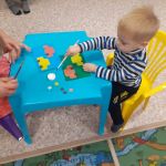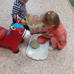 Ребята играли в кубики и искали мелкие игрушки в крупе. Пластилином раскрасили улитку и собрали пазлы — животные. Сварили кашу ослику. Сделали аппликацию «машинки».