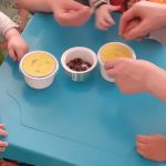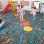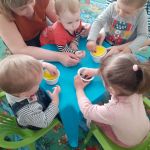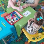 Сегодня в детской студии «Развиваемся, играя» малыши помогали сказочному персонажу колобку отыскать бабочек на полянке. Сначала колобка накормили, затем построили для него волшебную дорожку и бежали по ней до самой поляны. После станцевали с цветами и слепили гусеничек из пластилина. В конце занятия сделали аппликацию «Яркая бабочка».