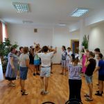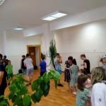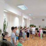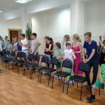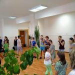 Сегодня в инклюзивной творческой лаборатории «Дорога к счастью» состоялось два занятия для детей с ОВЗ: вокал и актерское мастерство. На занятии по вокалу под руководством Варакиной Светланы Павловны дети делали дыхательную гимнастику, работали над дикцией, над речеобразованием, над координацией всего тела, опорно-двигательного аппарата, подключали работу спинного и головного мозга, варьировали, чтобы весь организм ребенка работал в комплексе и, конечно же, пели. Были интересные музыкальные ритмические упражнения в паре вместе с родителями. На театральном занятие под руководством Белоконя Владимира Андреевича дети занимались театральной разминкой, построением геометрических фигур всем коллективом и разбором театральной постановки, которую ребята с родителями готовят на день открытых дверей.