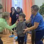 Сегодня на театральном и музыкальном занятиях, вместе с педагогами, ребята из инклюзивной творческой лаборатории “Дорога к счастью” продолжали работу со звуками и учили песенку про паровоз. К произношению звуков добавляли еще и движения.