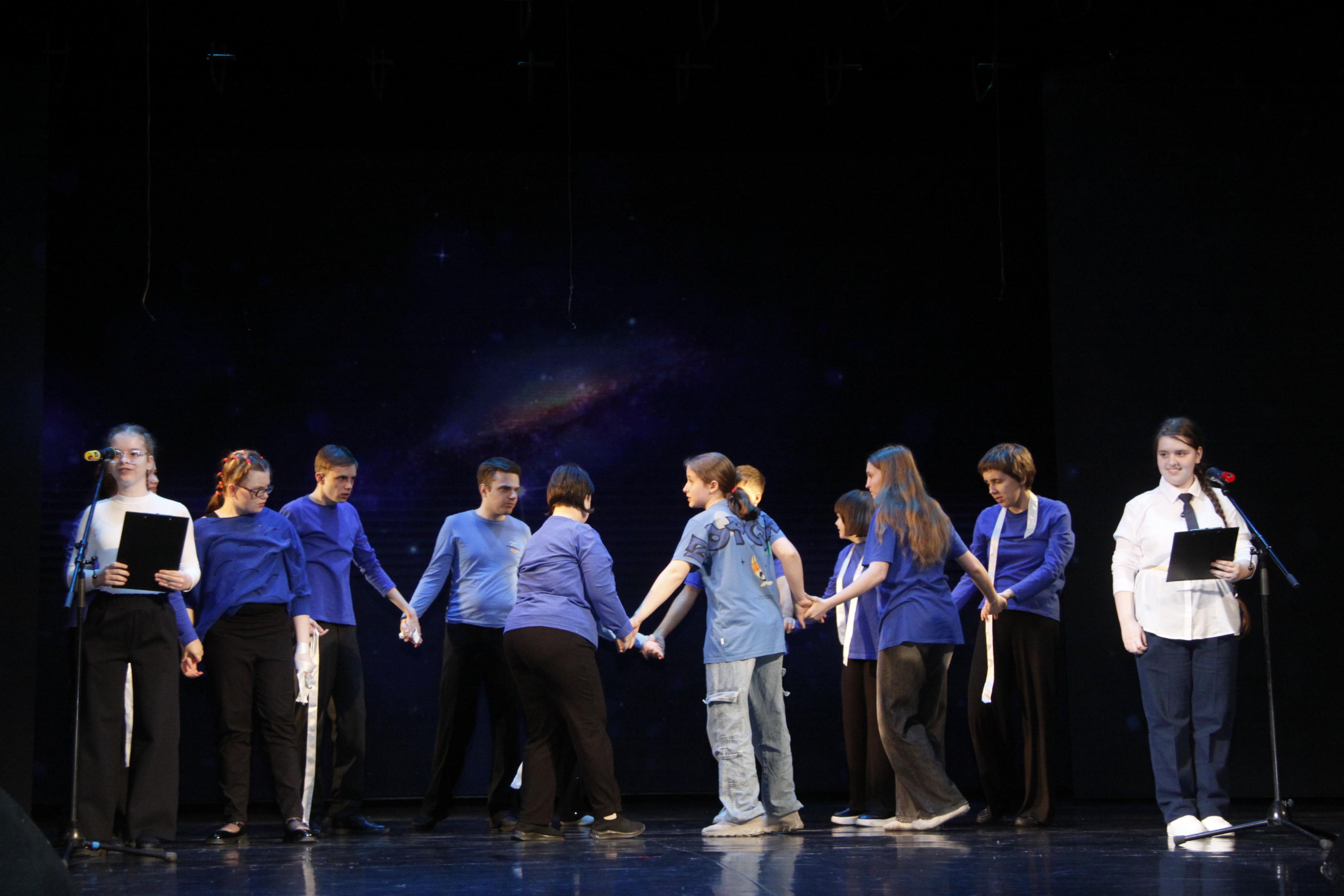 Открыл программу «Народный коллектив» — ансамбль современного эстрадного танца «Серпантин» (руководитель Ирина Манжосова) с проникновенным номером «Мечта». Тему уникальности внутреннего мира продолжили участники театральной студии инклюзивного объединения «Дорога к счастью» (руководитель Владимир Дорогин) с постановкой «Космос».